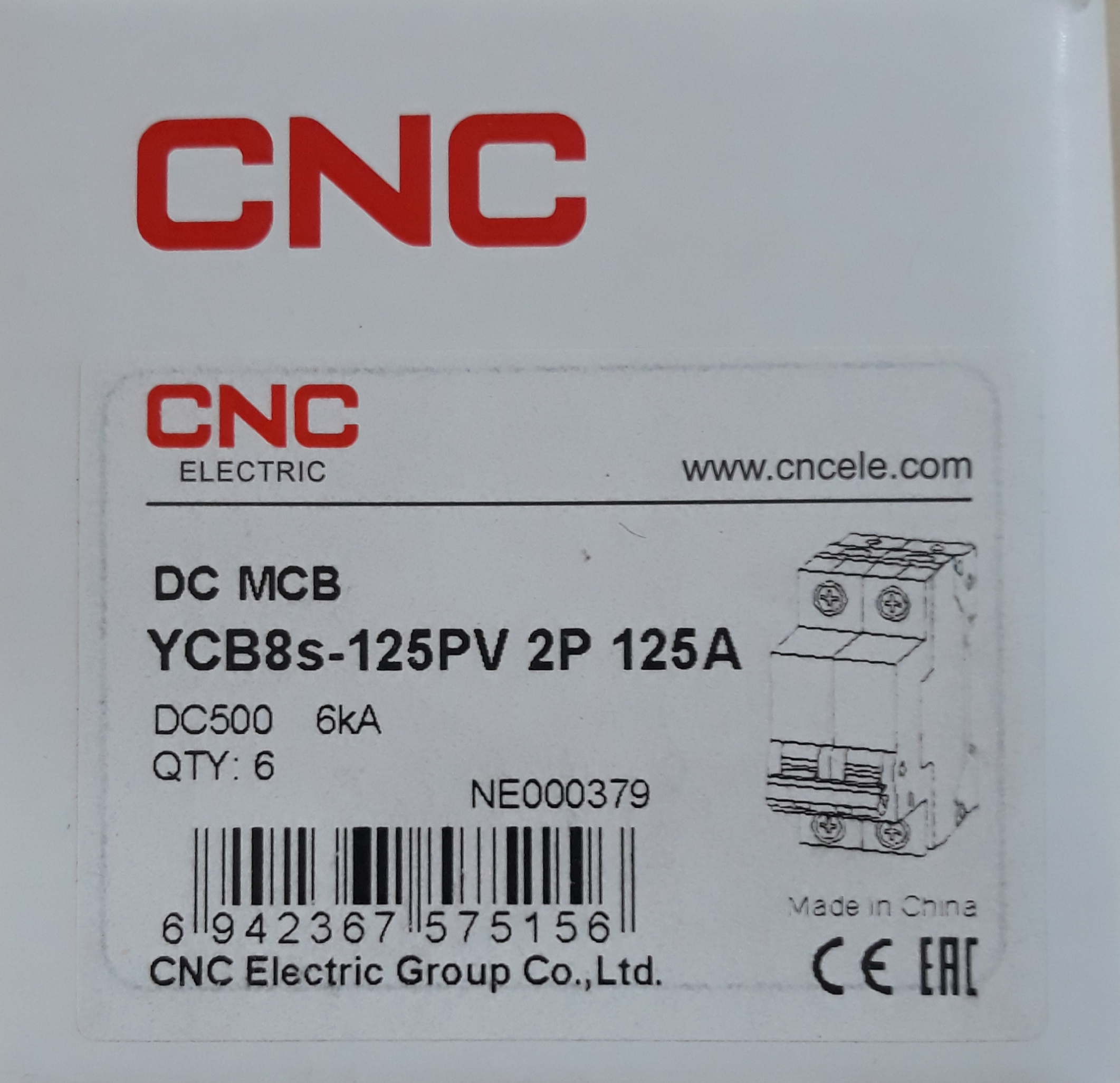 فیوز دی سی 125 آمپر برند CNC DC500V دو پل 6KA MCB ولتاژمقاومت در برابر ضربه نامی 4 کیلو ولت مناسب برای باطری های لیتیوم فسفات آهن و پنل های خورشیدی